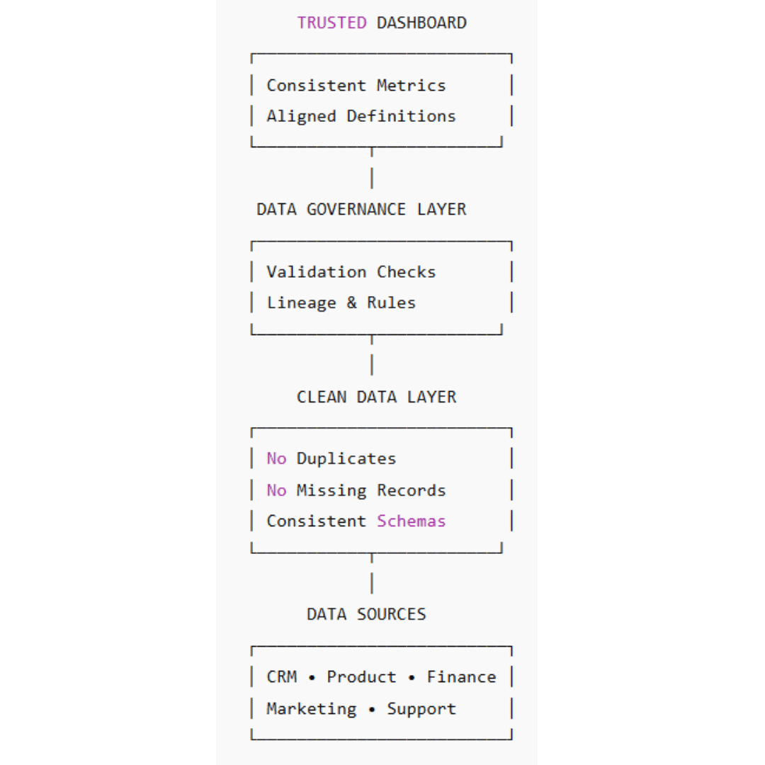 When your underlying data is inaccurate, duplicated, inconsistent, or poorly integrated, your dashboards are guaranteed to mislead. And when that happens, users stop trusting them altogether.